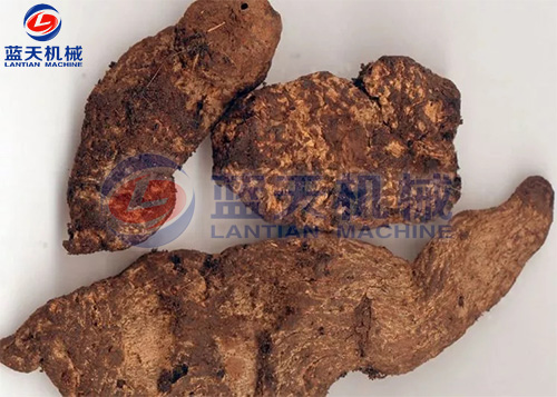 將生地黃洗凈涼干,泡入黃酒中,約3至5天,然后放鍋內(nèi)加清水烘煮,每百斤鮮生地用黃酒10斤,清水30斤,待酒味浸入地黃(一般需2至3小 時),然后撈出地黃稍涼后放到烘干機(jī)里烘干,直至干燥即為熟地。因生地含糖性較高,干的程度以手摸不粘、干硬為主,否則 為濕貨。切記勿用硫磺熏蒸。