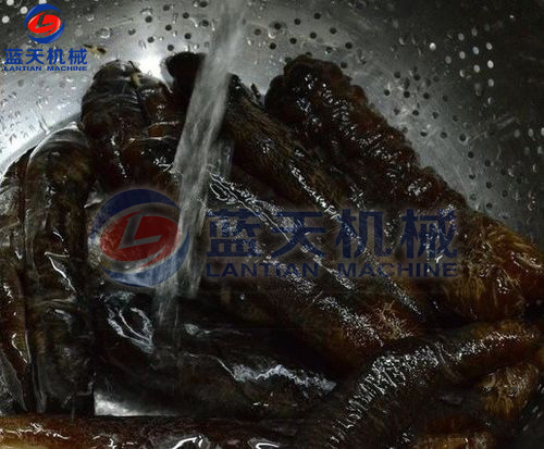 第二步:清洗海參:海參較難清洗干凈,所以取出內(nèi)臟后,將海參反復(fù)清洗干凈,一般清洗5次至干凈止。