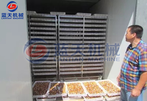 2)按照7P烘干除濕一體主機(jī)配置30立方烘干房,可放入物料車6臺(tái),每次可以烘新鮮杏子2000斤,杏子干鮮比接近5:1。