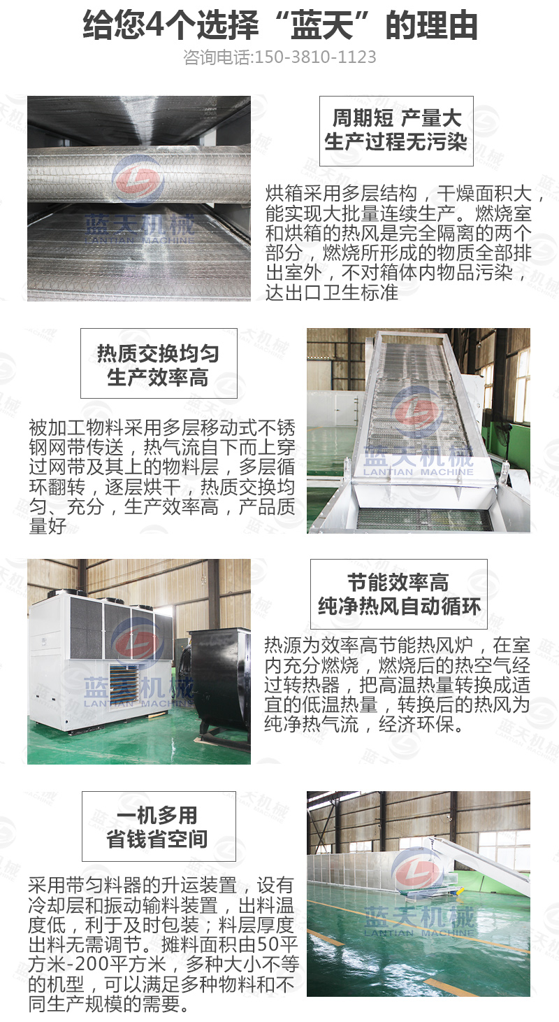 3、山藥片網(wǎng)帶烘干機(jī)設(shè)備性能: