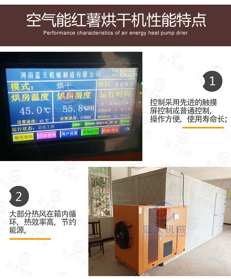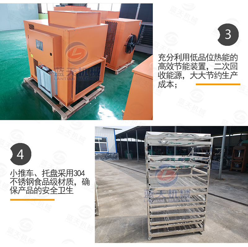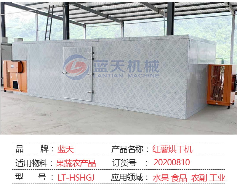 干燥烘干地瓜。干燥烘干地瓜有兩種辦法,一種是通過日曬的辦法,一般不下雨的情況下,在陽光下曬4-5天即可,要定時(shí)翻轉(zhuǎn)。另一種辦法是利用地瓜干烘干設(shè)備進(jìn)行烘干地瓜,這種辦法適合量大,且不受天氣影響。開啟地瓜干烘干設(shè)備。將已經(jīng)擺好托盤的地瓜推進(jìn)去地瓜干烘干機(jī)內(nèi),關(guān)閉房門。通過智能控制面板,設(shè)置好溫度和濕度,一般設(shè)置為四個(gè)階段,一階段設(shè)定45℃,定時(shí)2~3小時(shí)。二階段溫度設(shè)定50℃,定時(shí)3小時(shí)。三階段溫度設(shè)定60℃,定時(shí)3小時(shí)。四階段溫度設(shè)定70℃,定時(shí)3小時(shí)。一般用時(shí)12個(gè)小時(shí)即可。