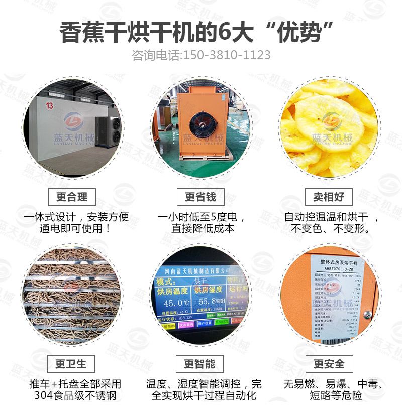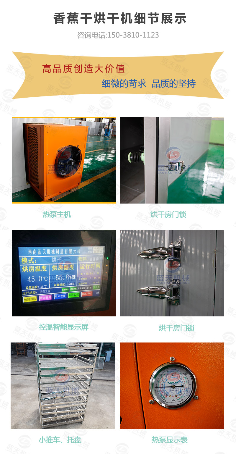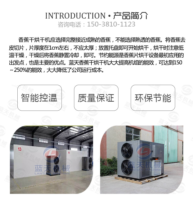 香蕉干烘干機(jī)使用的是熱泵空氣能加熱系統(tǒng),所以香蕉片烘干過程中受熱更加均勻。