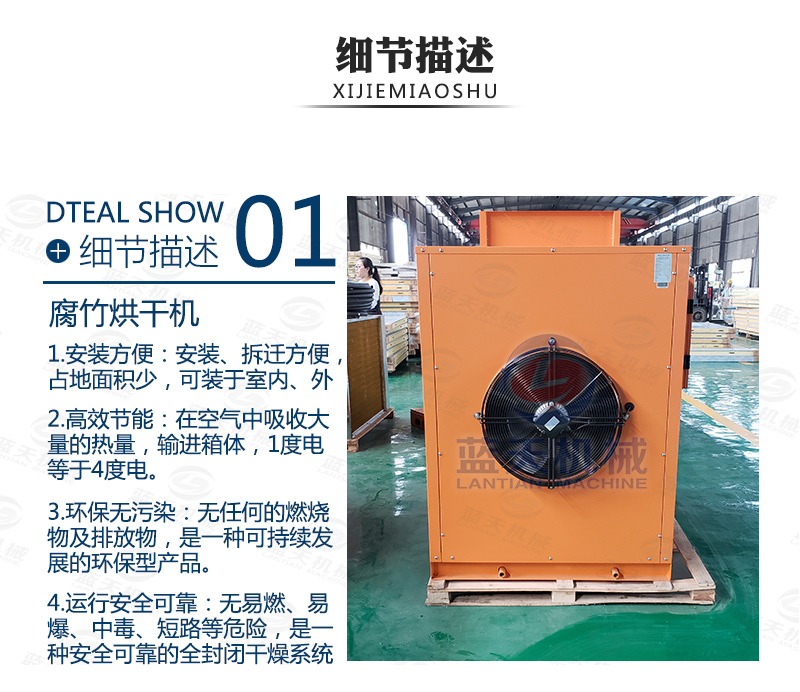 在很多地區(qū),腐竹烘干的市場也很大,近年來,隨著腐竹生產(chǎn)技術(shù)和烘干技術(shù)的提高,使用熱泵腐竹烘干機,不用燒煤、燒柴、不用鍋爐、蒸氣,只需少量的電能來驅(qū)動壓縮機就可以獲得所需要的高溫?zé)崃?,并且安全衛(wèi)生、環(huán)保沒有污染、無廢氣排放、運行電費超低。