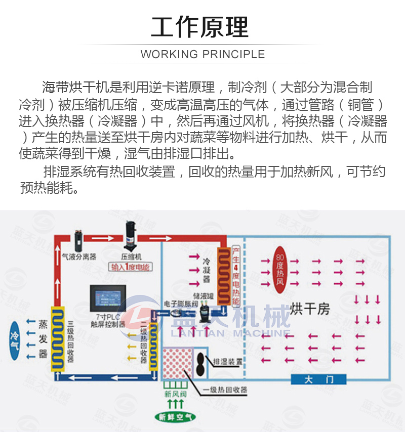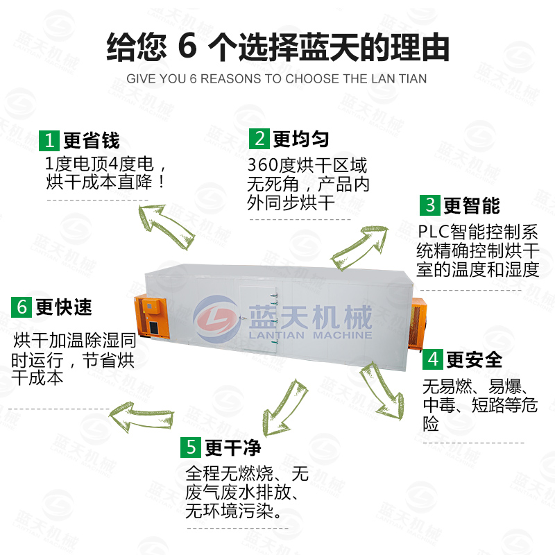 要達(dá)到以上的要求,那么烘干設(shè)備是很嚴(yán)格的。傳統(tǒng)的太陽(yáng)晾曬等方法都是不合格的,海帶烘干機(jī)需要消耗少量的電就能從空氣能吸取大量的熱能使烘干房迅速升溫,同比傳統(tǒng)的烘干設(shè)備節(jié)能百分之六十以上。海帶烘干設(shè)備在常壓常溫下運(yùn)行,烘干過程幾乎沒有污染物排放,不會(huì)對(duì)產(chǎn)品和環(huán)境造成污染。海帶烘干房是真正可靠的新型烘干設(shè)備。海帶烘干機(jī)烘干成本低,效率也高,提高了商家的利益,我們都知道海帶的價(jià)格是很便宜的,所以如果想要從中獲得利益,那么成本不能高,成本一高,也就掙不到什么。所以海帶烘干機(jī)是適合用來(lái)烘干海帶的。