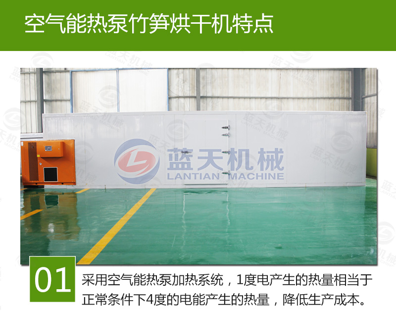 節(jié)能效率高、不受天氣限制:空氣源熱泵竹筍烘干機(jī)的運(yùn)行費(fèi)用只有燃油干燥機(jī)的40%,燃煤干燥機(jī)的60%和電熱加熱設(shè)備的30%,竹筍烘干機(jī)價(jià)格大大節(jié)省了烘干的成本為企業(yè)創(chuàng)造了直接的利潤(rùn)。安裝竹筍烘干機(jī)只需要一塊占地不大的平地面積就可以了,安裝操作簡(jiǎn)易 。