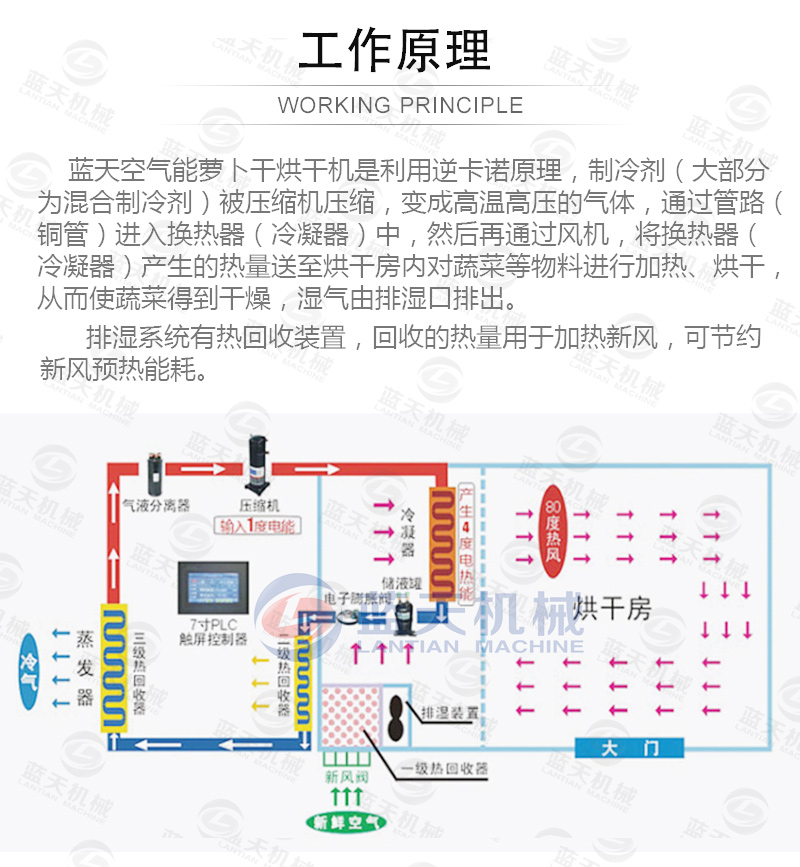 空氣能熱泵蘿卜干烘干機(jī),在蘿卜干烘干過程中的優(yōu)點(diǎn):