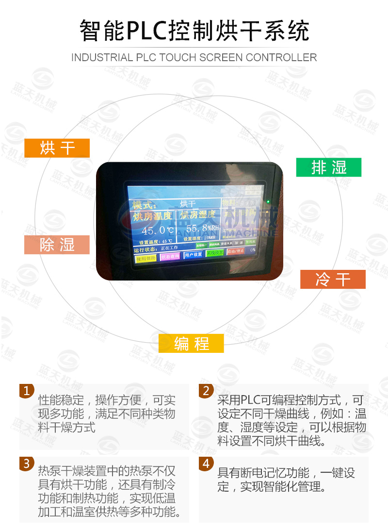 2、烘干時(shí)間短。高溫?zé)岜煤娓擅撍卟松a(chǎn)工藝,所需用的時(shí)間不會(huì)超過8h,一般從預(yù)熱到出產(chǎn)品4h即可完成。